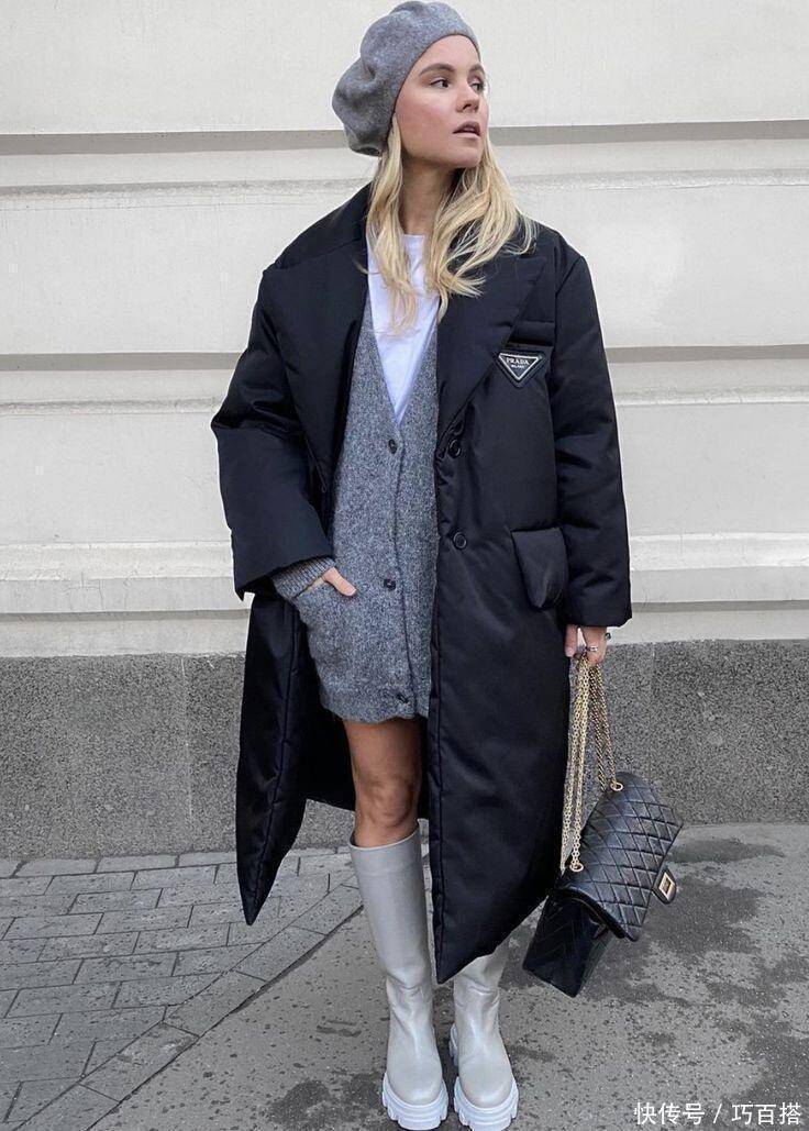 如果大家非要选,可以像博主一样直接选择黑色长款羽绒服和高筒靴,全方位保证减少露肉面积,增加保暖效果,值得一试,在室外拉上长款羽绒服拉链,也能对抗寒风,但如果你想穿短裙但又没有长款羽绒服,就需要三思了。